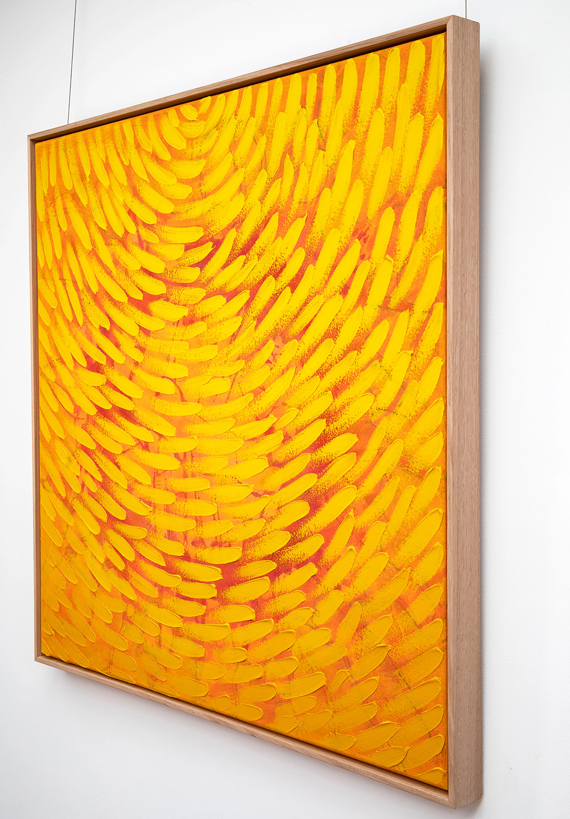 Framed in raw oak.