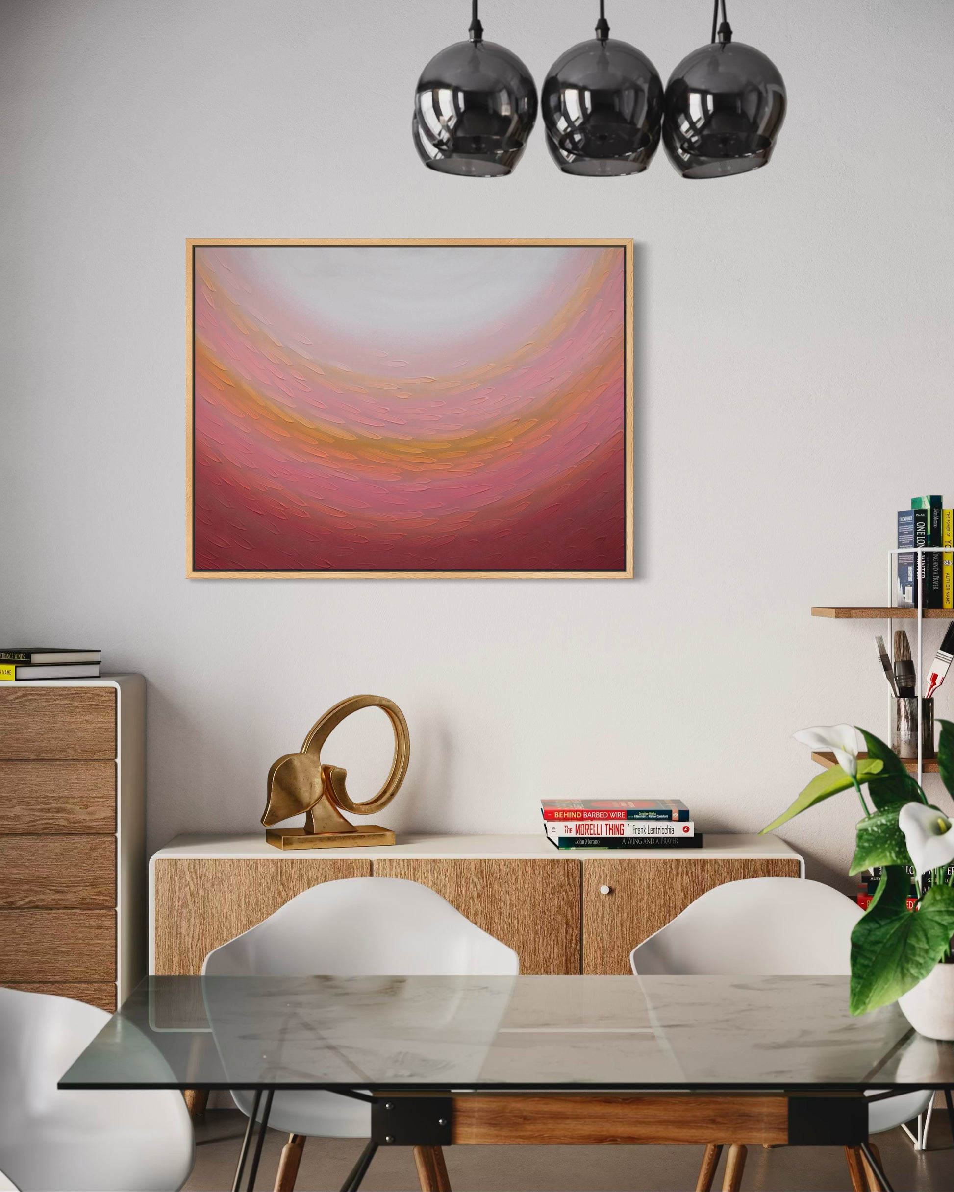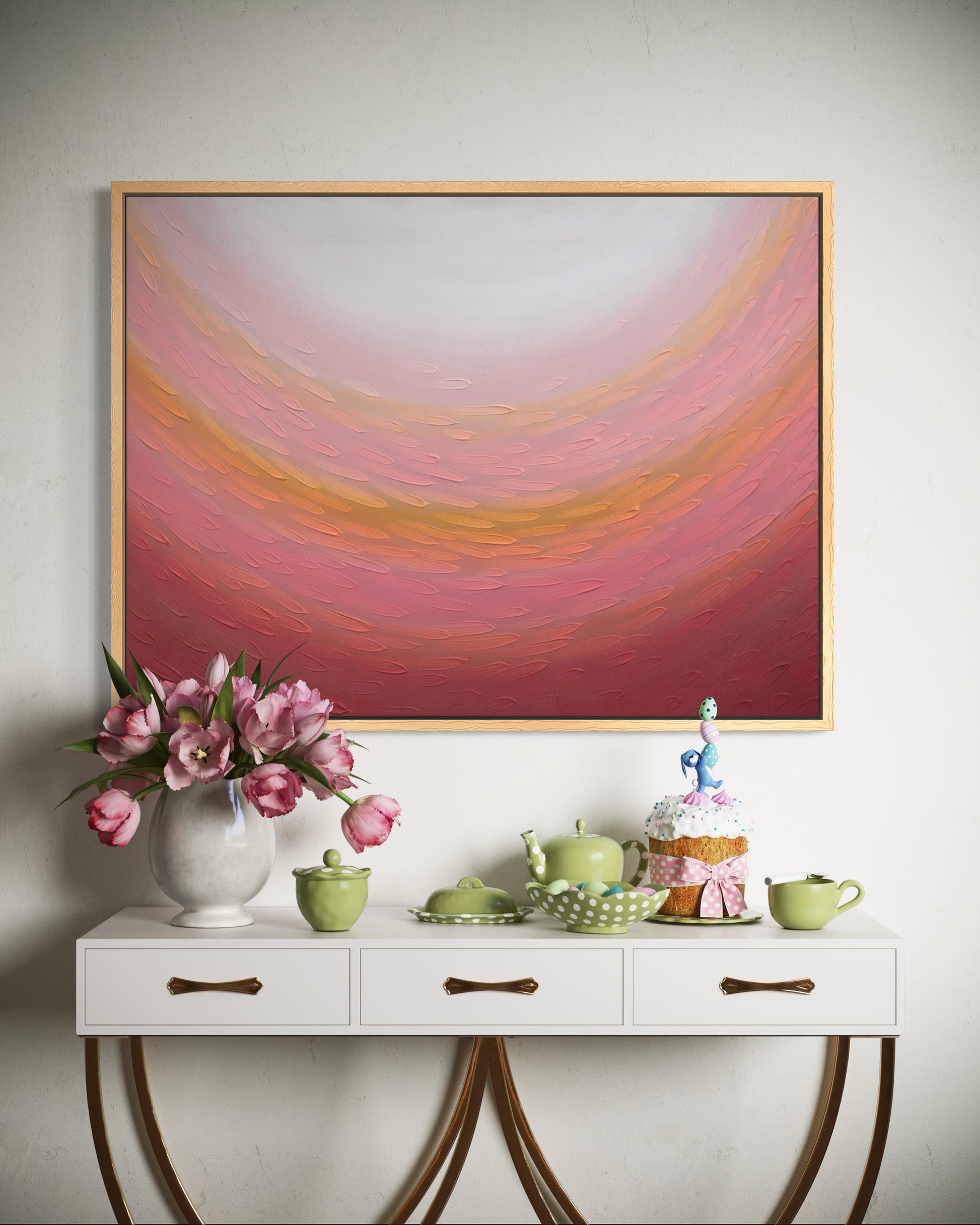 Mixed media on canvas, framed in oak.
