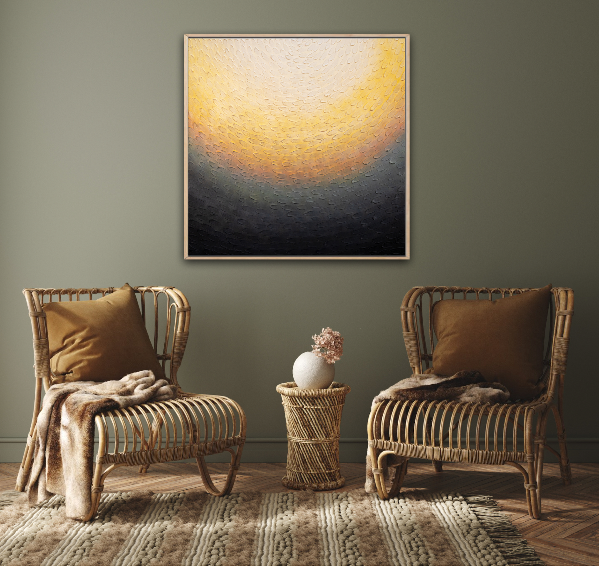 Painted on 12oz heavy duty hand stretched canvas.